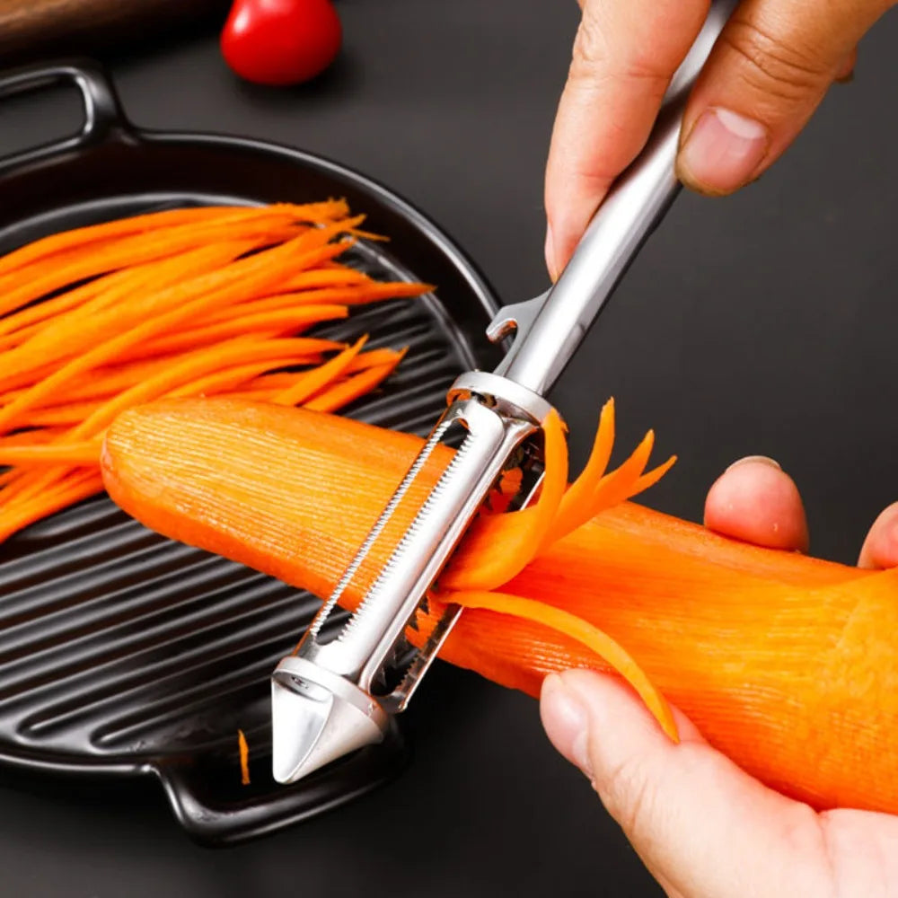Este pelador multifunción es la herramienta ideal para preparar frutas y verduras sin esfuerzo. Pela, corta en juliana o en láminas finas con precisión profesional en segundos. Un accesorio imprescindible para recetas rápidas y saludables, incluso en cocinas pequeñas.