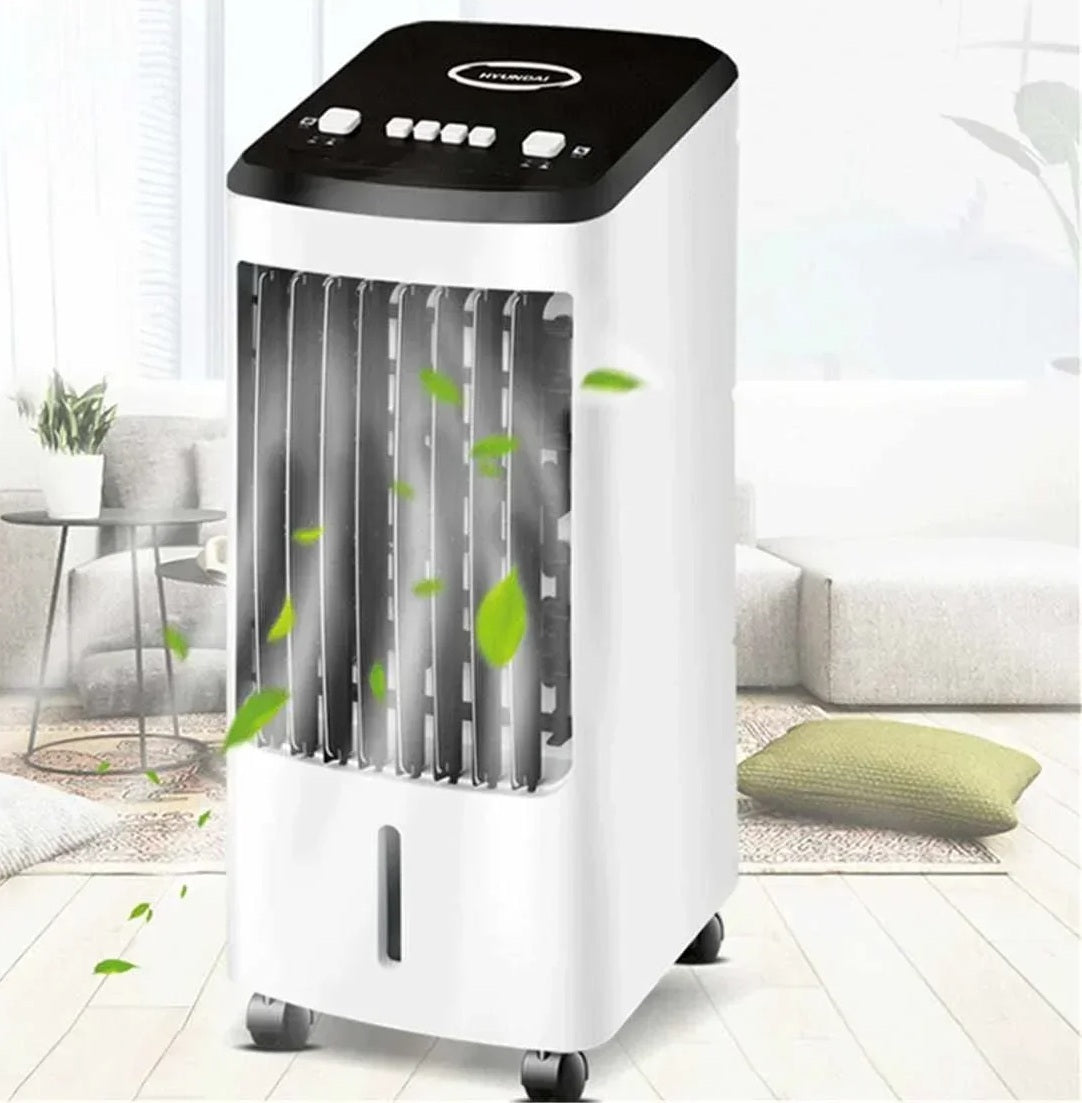 Este climatizador evaporativo portátil destaca por sus características únicas: un tanque de agua de 4L, tres velocidades ajustables, control remoto y rejillas orientables. Además, su diseño compacto y elegante se adapta a cualquier espacio, ya sea en el hogar u oficina.